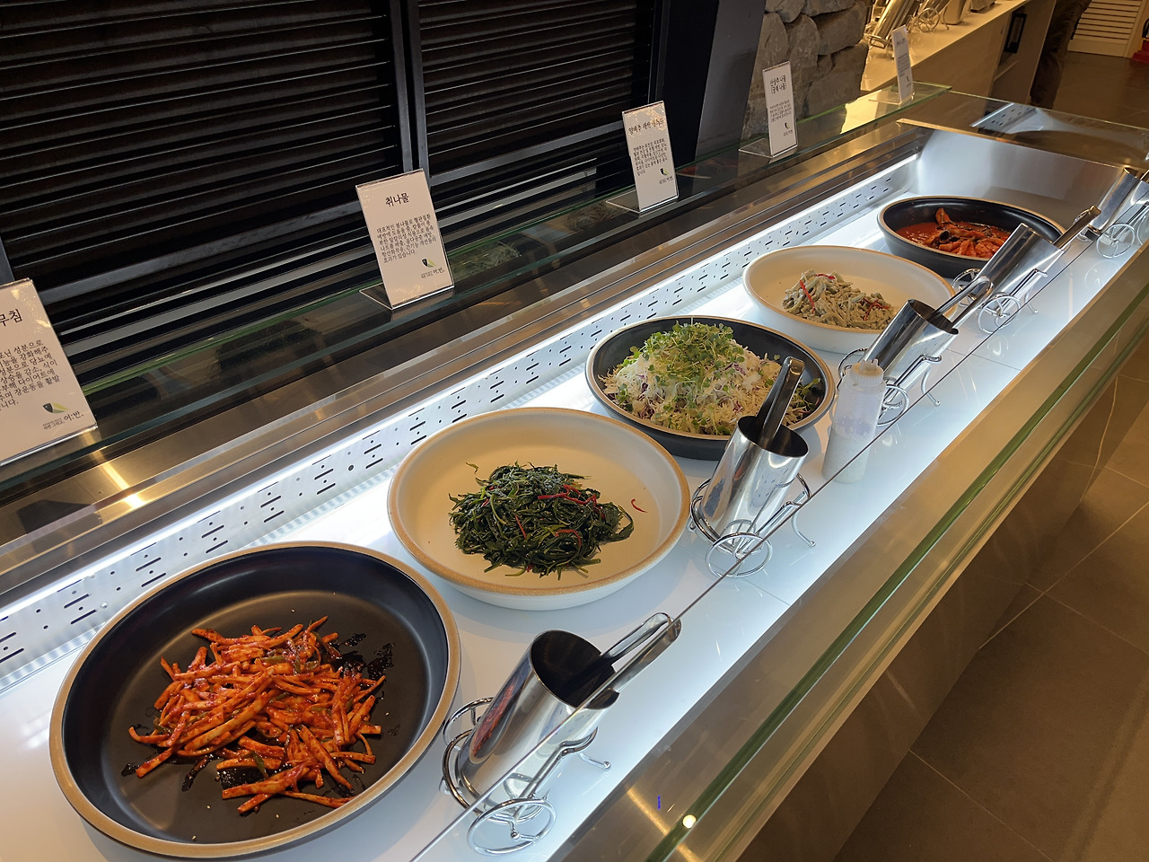 <김치를 비롯해 잡채, 청포묵, 시래기국까지 다양한 반찬들을 샐러드바에서 무제한으로 가져다 먹을 수 있었어요.